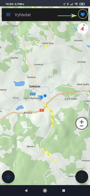 Jestliže máte zdroj uložený na výše popsaném místě, spusťte aplikaci Sygic. Po spuštění klikněte na srdíčko.