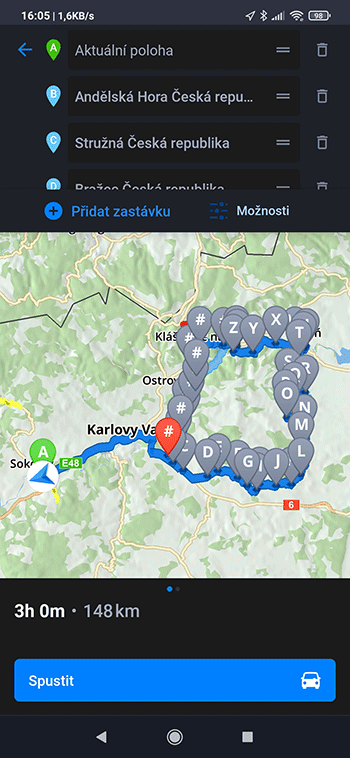 Pokud si budete chtít trasu upravit podle sebe, můžete body přidávat i ubírat jak potřebujete. Nezapomínejte dávat pozor na objížďky a uzavírky. V letních měsících je to běžné. Šťastnou cestu.